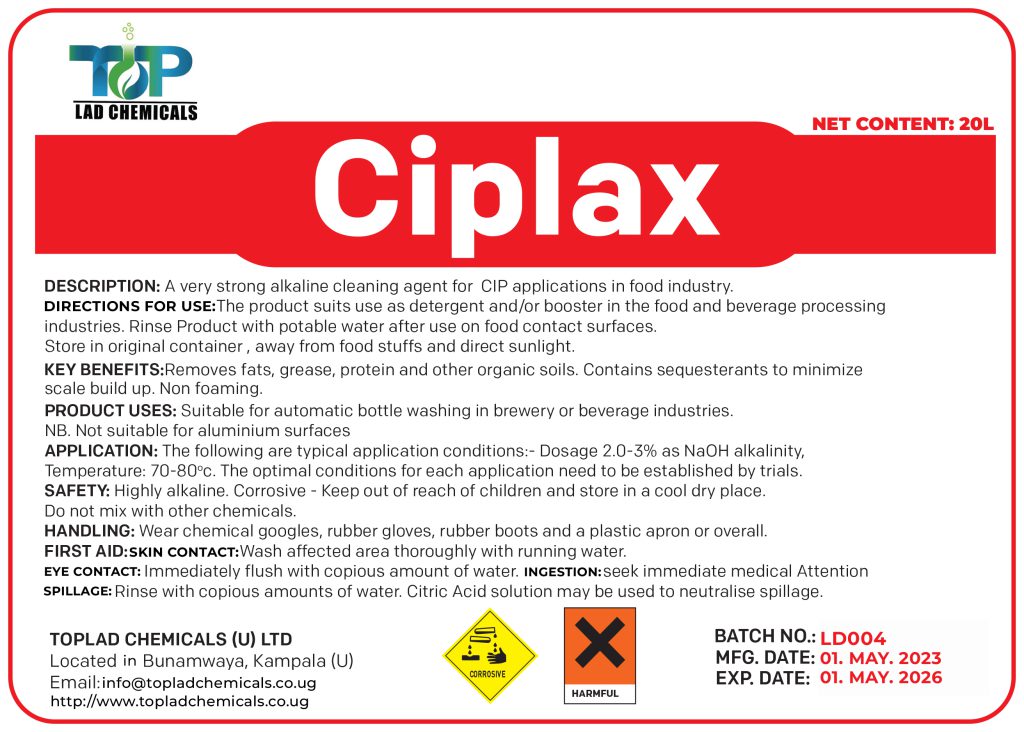 Ciplax is a very strong alkaline cleaning agent for CIP applications in the food and beverage Industry.